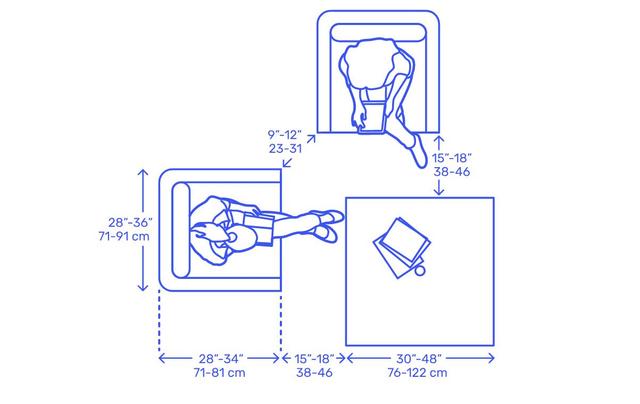 6.5.1 小型接待區(qū)一般是沙發(fā)座椅組合;椅子的尺寸:寬度0.8m~0.9m,高度0.38m~0.45m;沙發(fā)座椅與其它相鄰的臺面不應小于0.38m。